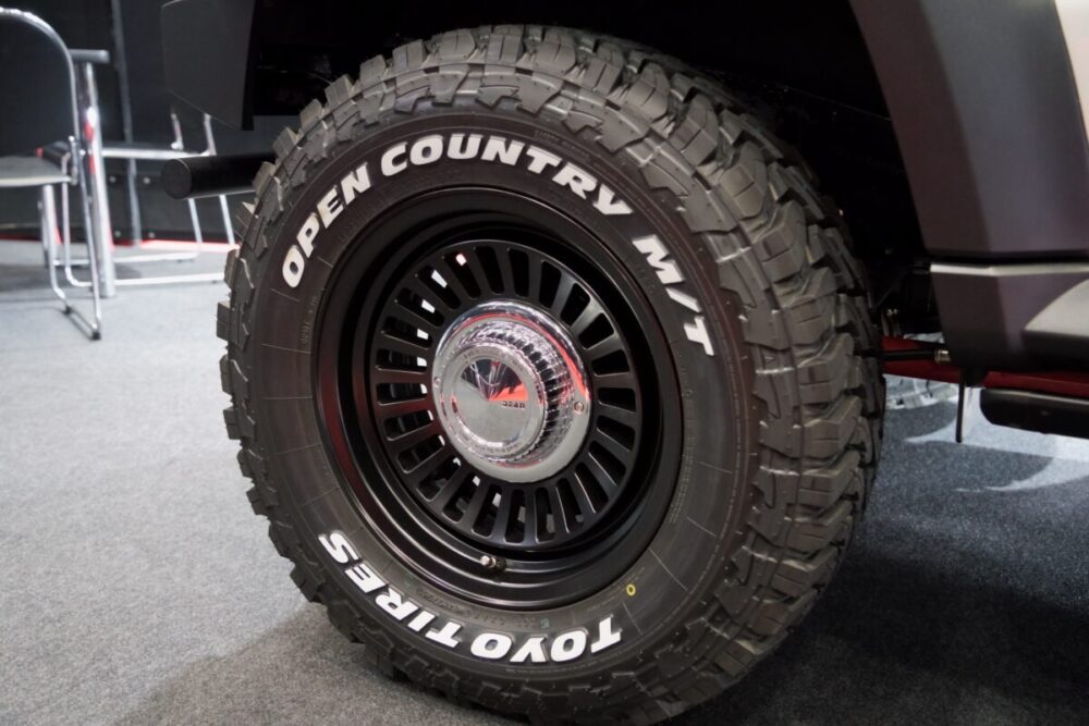 実はこのホイール、もともとフォードの「アーリーブロンコ」のようなテイストをイメージしてデザインされたモデル。それをクラシカルな見た目をもつジムニーに装着するのだから、フィットは約束されたようなものだ。
