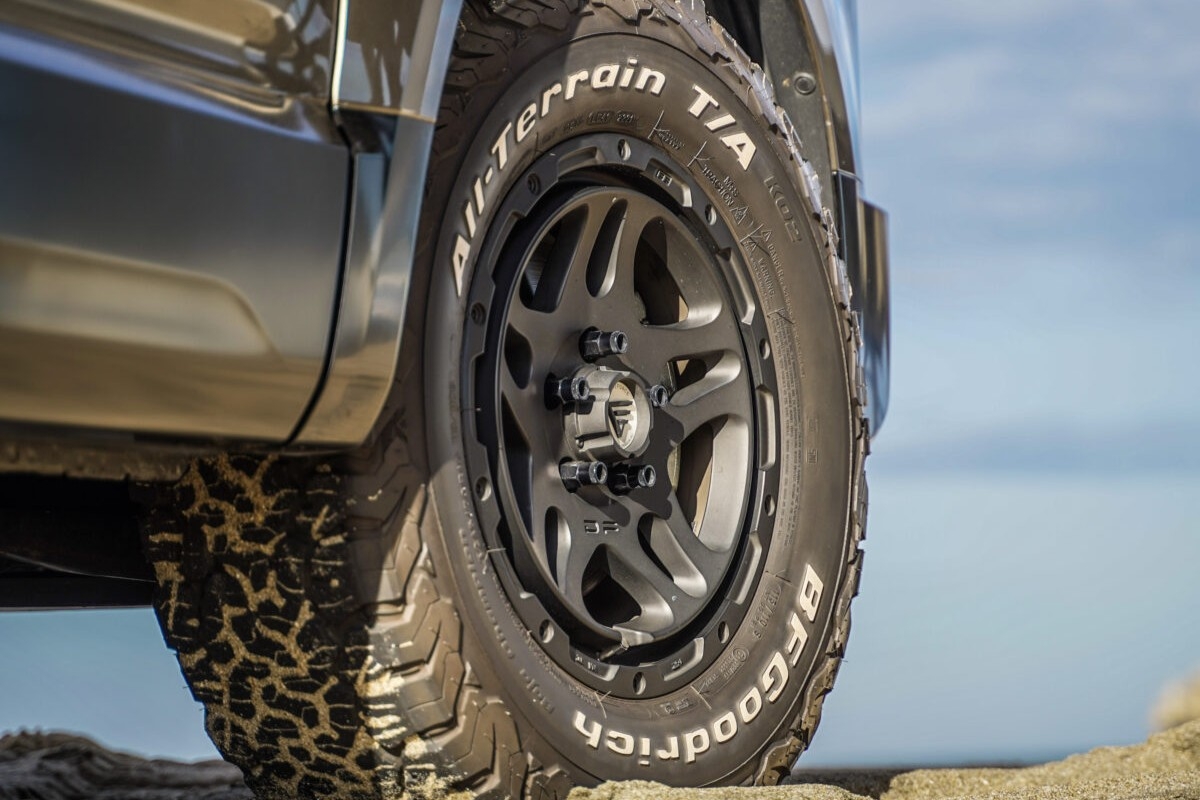 ワイルドな印象を強めるAT、MT、RTと相性抜群です。ゴツゴツ感のあるトレッドパターンを組み合わせることで、ホイールの持つオフ感をより際立たせることができます。