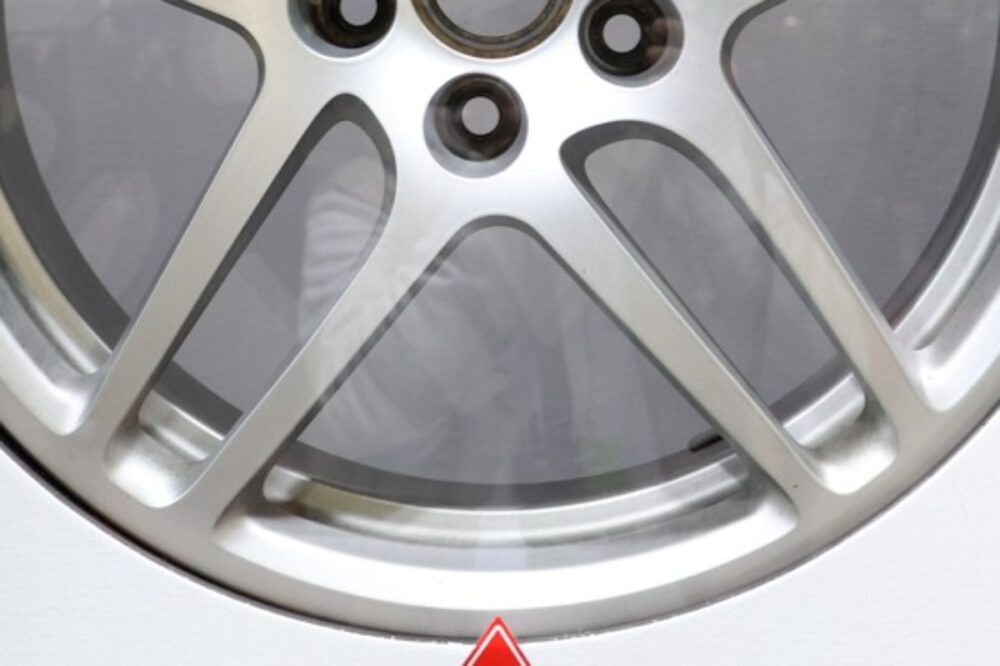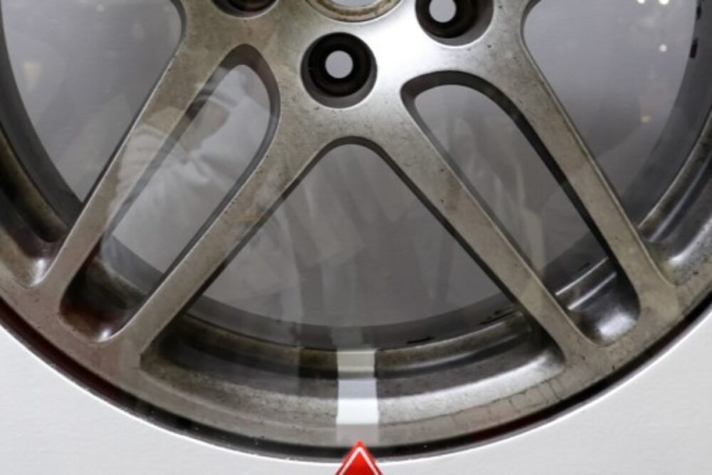 「ストリート・一般公道用/Street & Highway」ゾーンで注目を集めた展示のひとつが、輸入車の純正パッドと「ディクセル」のMタイプパッドによるダスト量の違いを検証したホイール。とあるドイツ自動車メーカーのDセグメントSUVを使用し、通勤やレジャーでの使用を想定して同一社員がそれぞれ1000kmずつ走行し、ブレーキダストが付着したホイールを用意した。