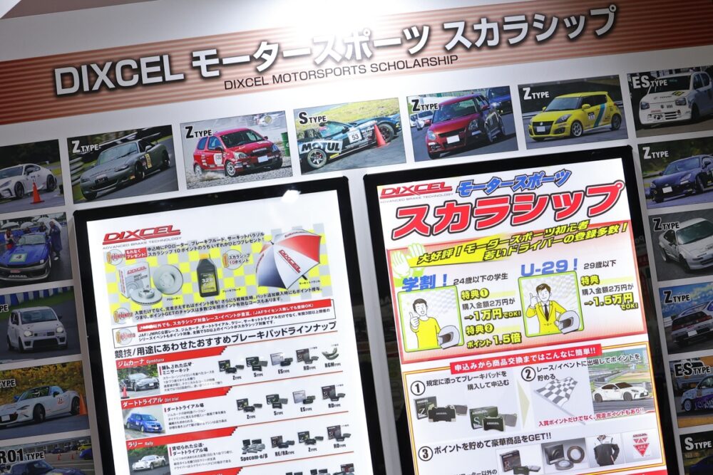 「ディクセル」は、モータースポーツを愛するドライバーたちを応援中。多彩な競技のシリーズ戦などを対象としたスカラシップ制度を、継続的に実施している。