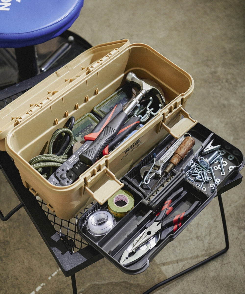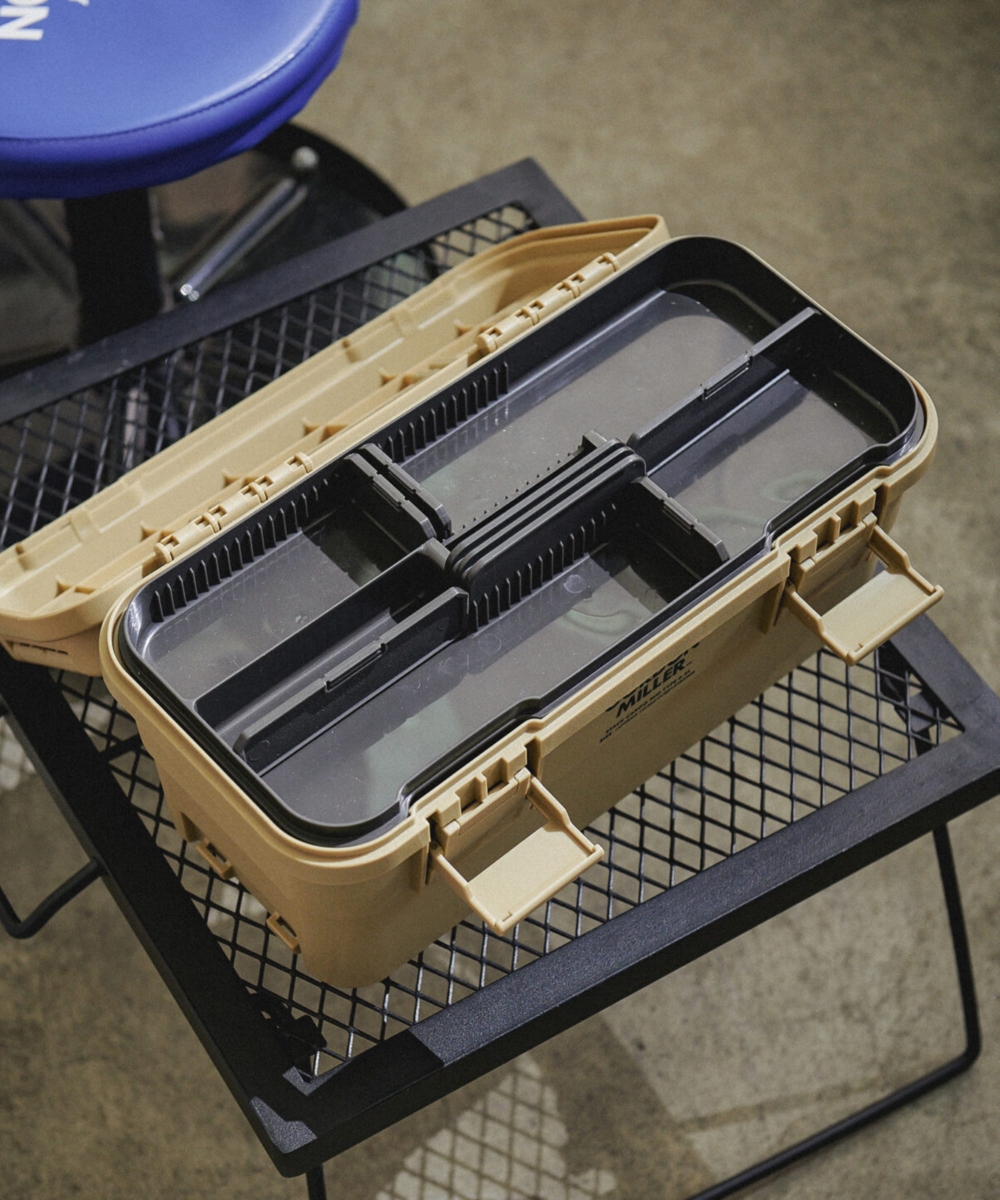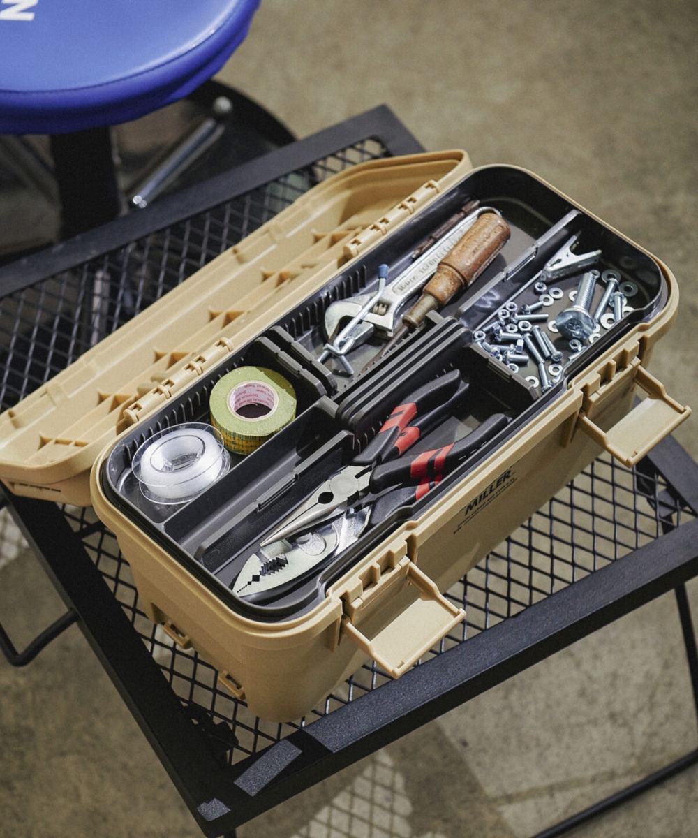 内部にはトレーが備わり、細かなモノを仕分けしやすいのもポイント。さらに、サイドの連結バックル部にはベルトを通せる穴があり、肩掛けでの運搬にも対応する。耐荷重20kgの頑丈設計で、GORDON MILLERの「スタッキング トランクカーゴ」上にも効率よく積載可能。オリーブドラブとコヨーテの2色展開で、車内を実用一辺倒ではなく“見せる収納”として楽しめるのも、この製品ならではの強みである。価格は各色とも税込4,400円。