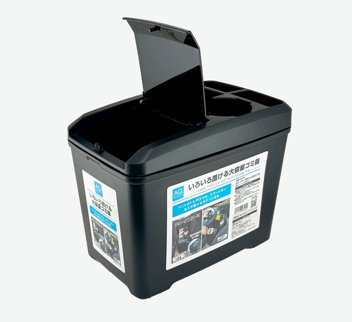 車内の快適性を損なう原因として見逃せないのが、置き場に困るゴミや小物類だ。そんな悩みに応えてくれるのが「AQ. いろいろ置ける大容量ゴミ箱 AG05」である。この製品は、500mlペットボトル4本分の容量を持つ大容量タイプでありながら、フラップ式のフタでゴミを捨てやすく、さらにドリンクホルダーや小物ポケットまで備えているのが特徴。単なるゴミ箱ではなく、“置き場不足”そのものを解決しやすいアイテムに仕上がっている。