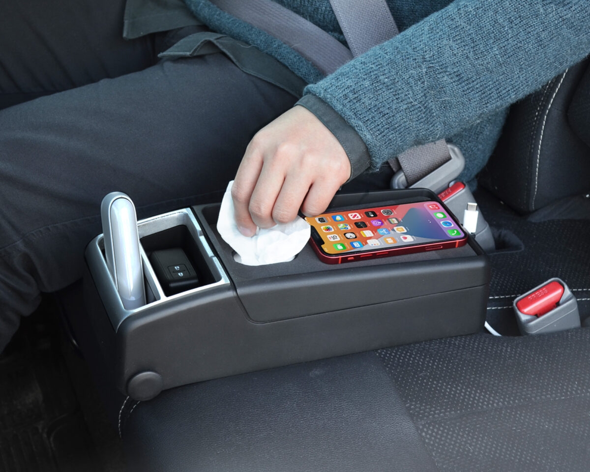 さらに、USB Type-CはPD対応で最大20W、USB Type-Aは最大18Wの急速充電に対応しており、収納アイテムでありながら電装アクセサリーとしての利便性も高い。12V/24V車兼用なので、軽自動車から大型車まで使いやすい点も魅力。車内で「置き場所が足りない」「充電口も足りない」と感じている人にとって、かなり満足度の高い一品といえるだろう。価格はオープン。