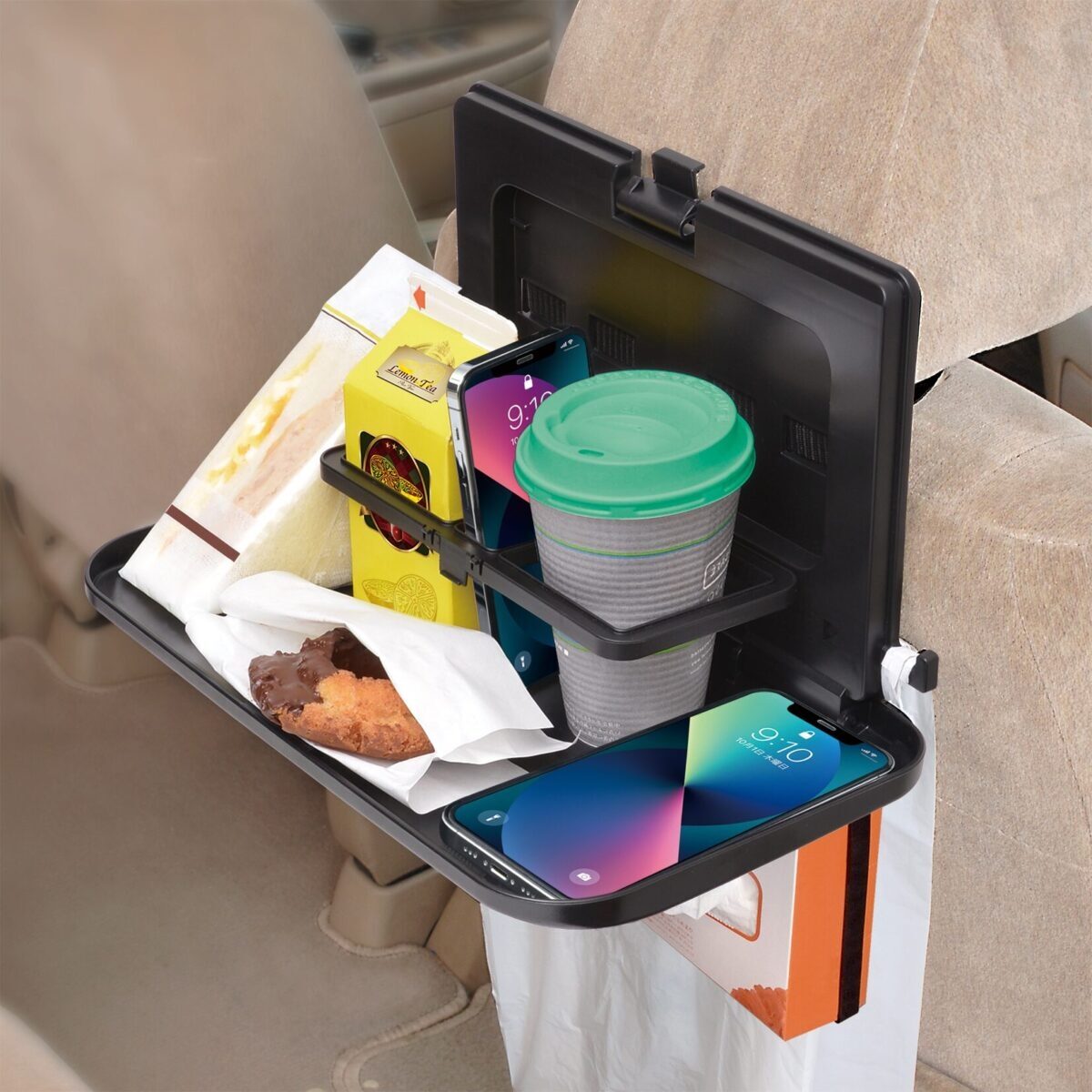 後席での快適性を高めたい人に向けた収納アイテムとして注目したいのが、セイワの「ビッグワイドリアトレイ WA100」だ。横幅345mmのワイド設計を採用したリアシート専用トレイで、トレイとしてもドリンクホルダーとしても使用可能。後席に座る人が飲み物や小物を置くスペースを確保しやすく、ファミリーカーや普段から同乗者を乗せる機会が多いクルマと相性がいい。