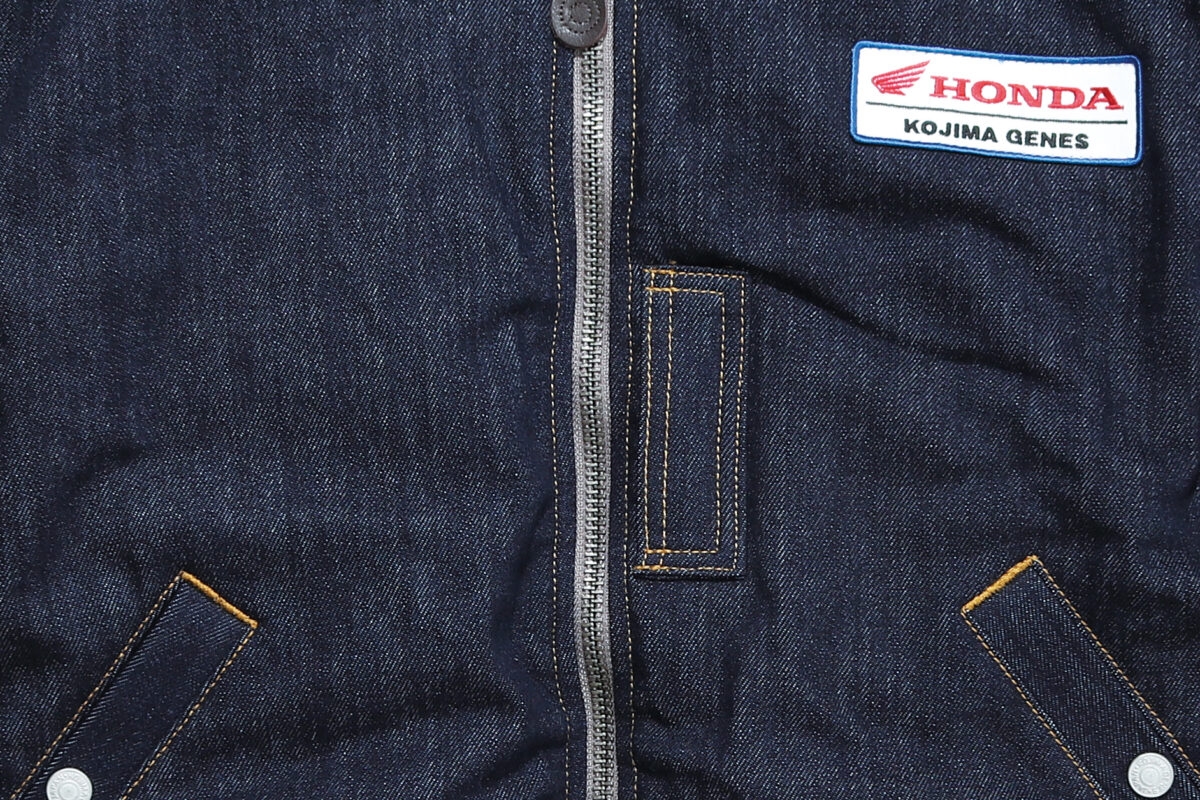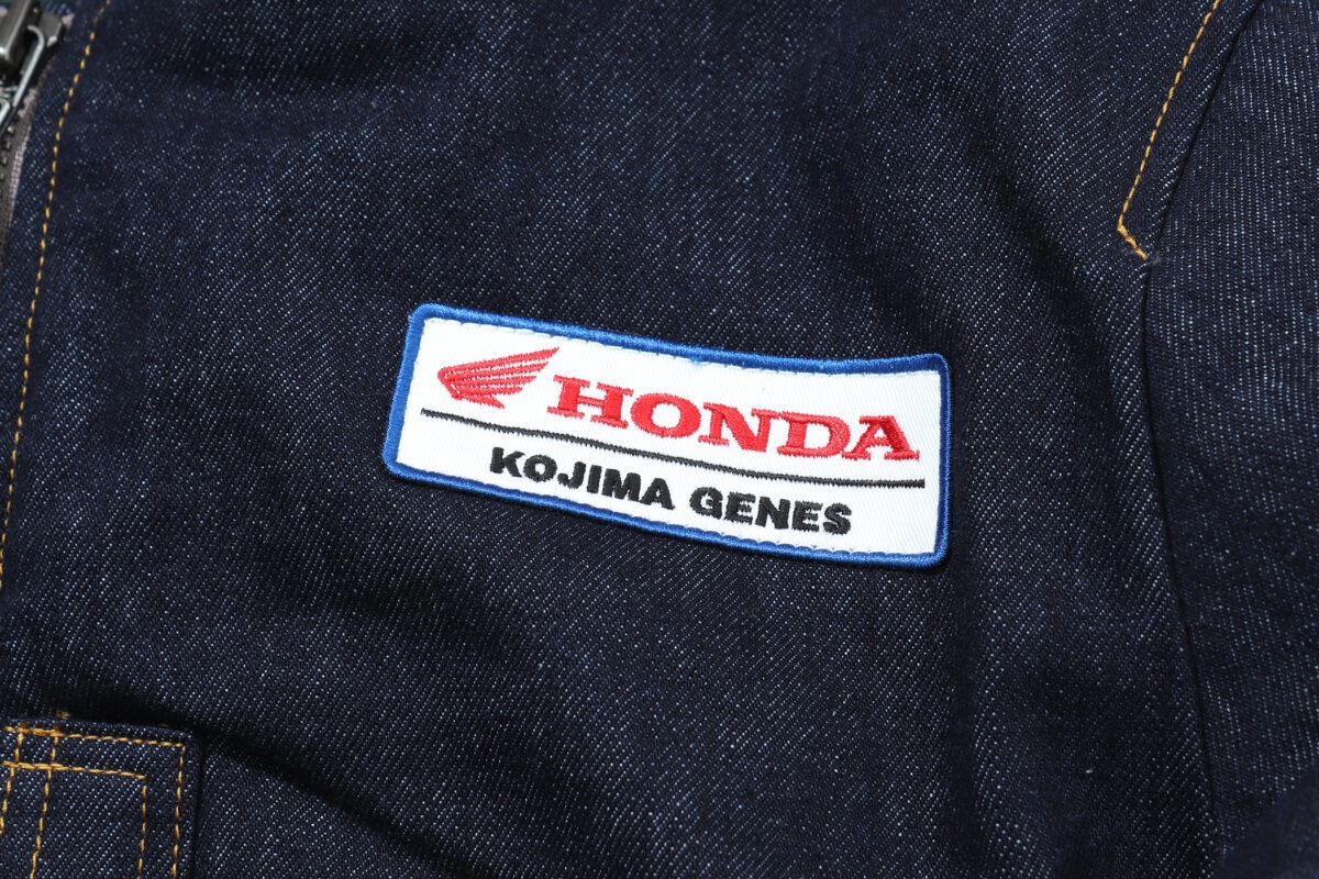 また胸元にはクラシックなワッペンをセット。ホンダロゴと児島ジーンズのロゴが入るワッペンは、昔のホンダ販売店のツナギにもありそうなデザイン! 長年着込んでいけば、デニムの経年変化を合わせて良い風合いを楽しませてくれそう。