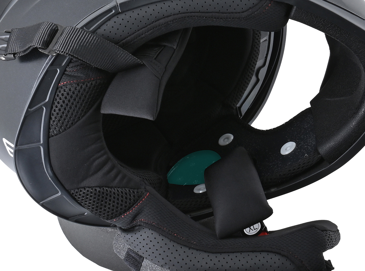 インカムスピーカー設置用の窪みがインナーライナーに設けられており、スムーズな取り付けが可能。スピーカーが動いたり、耳が圧迫されて痛くなったりといったことを防ぎ、クリアな音質が期待できる。