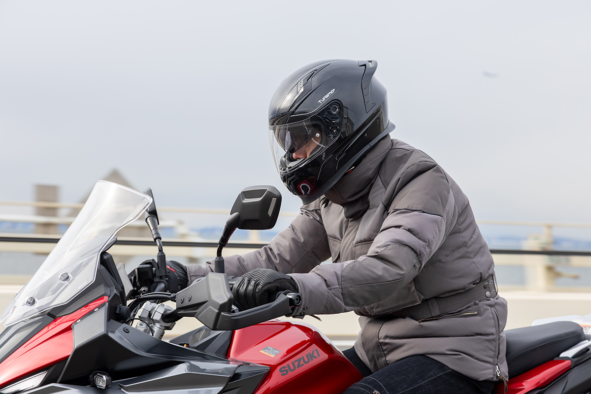 着脱時の手間や開放感といった意味では譲るものの、やはり安全性や静粛性といった面ではフルフェイスに分があるし、寒い季節はもちろん、夏場であっても風を浴びないというのは疲労の低減にひと役買うのは間違いない。