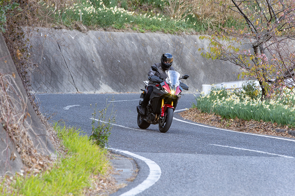 またワインディングでも良好な視界を得られた。視界も広く、シールドの歪みも無いので、路面状況やコーナーの先がクリアに見通せる。