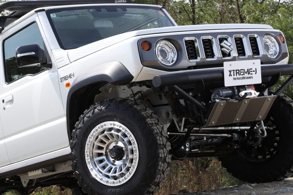 前型JA23の時代からありましたが、現行のJB64ジムニー/JB74シエラがより外側にホイールを出せるため、凹凸感のあるディスクデザインを得意とするXTREME-Jの存在感が高まったと思います」