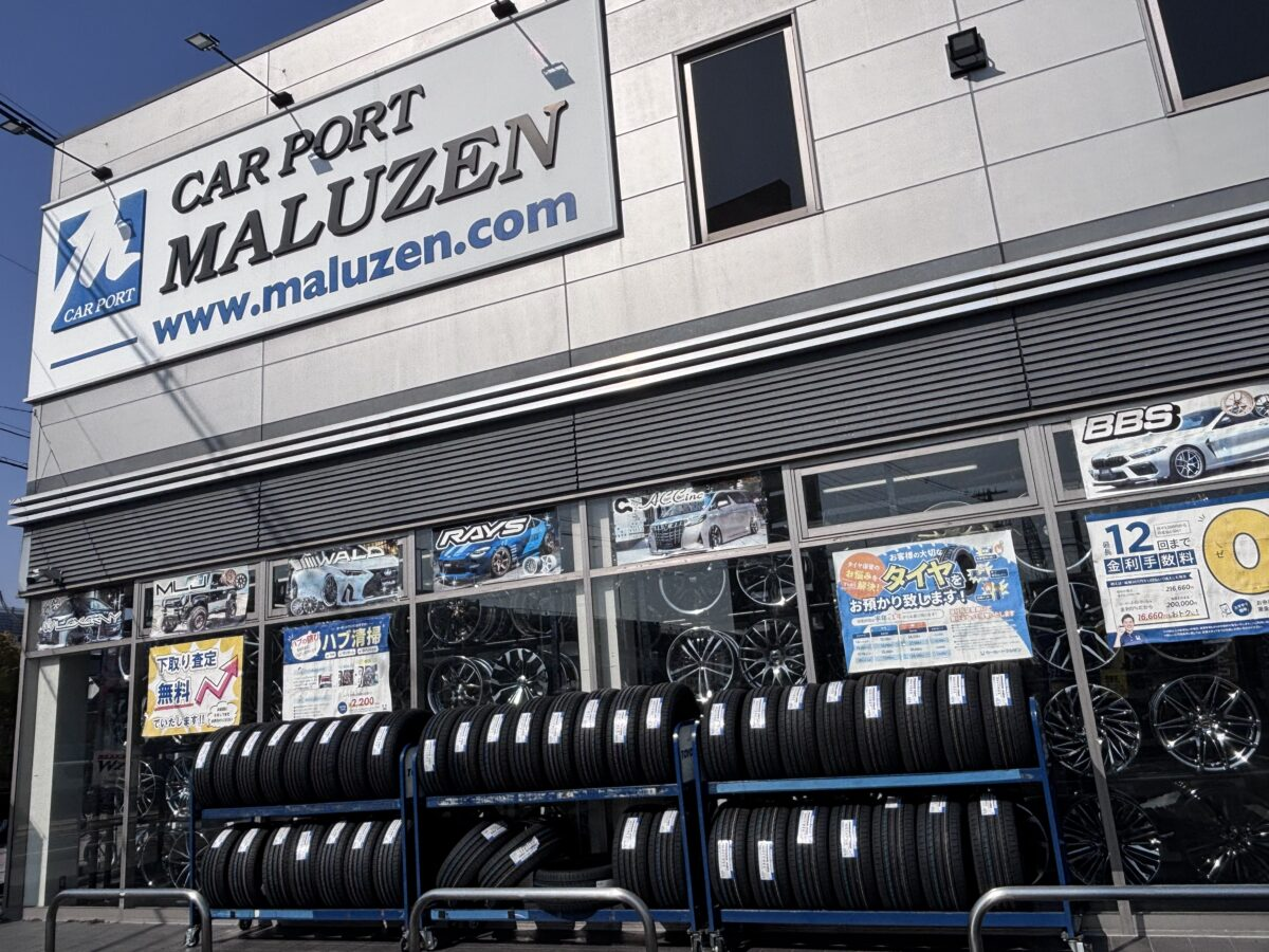 カーポートマルゼンは、アルミホイール・タイヤを中心に自動車用品を扱うタイヤ&ホイール専門店。公式サイトでは車両情報に合わせた適合データ表示で商品検索ができ、セット購入時は組み込み・エアー調整・バランス調整済みで出荷。取付は各店舗での作業に加え、全国の協力店紹介にも対応する。