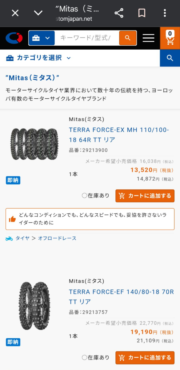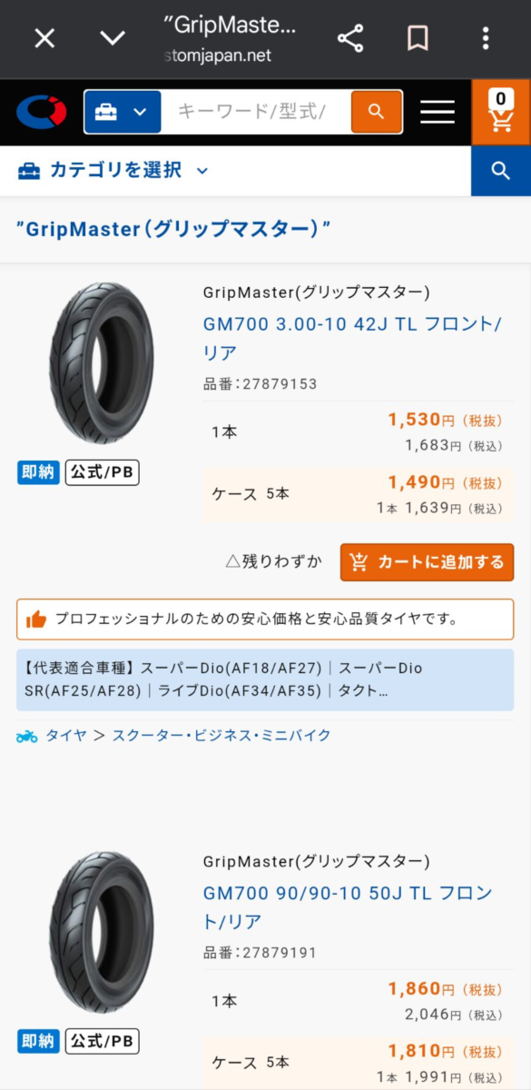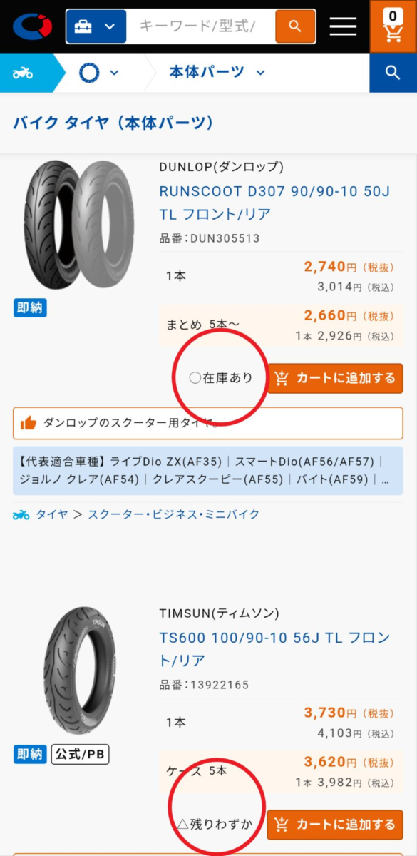 商品ページを開くと、在庫状況が分かりやすいアイコンで表示される。「在庫あり」なのか、取り寄せに時間がかかるのかが注文前にハッキリ分かるため、スケジュールが立てやすい。プロの現場を「待たせない」ために構築された在庫管理体制が、我々一般ユーザーのガレージライフも強力にバックアップしてくれる。 スピーディーな出荷対応も相まって、「週末のツーリングまでにタイヤ交換を済ませたい!」というタイトな要望にも応えてくれる可能性は高い。
