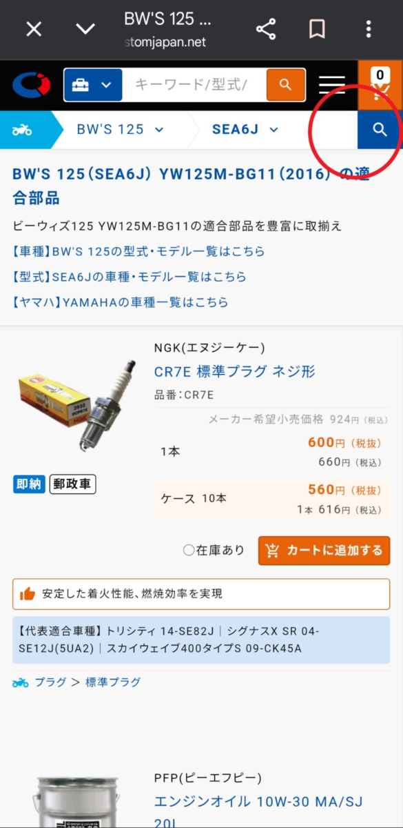 ④適合パーツがすべて表示されるので、赤丸の🔍タップ。
