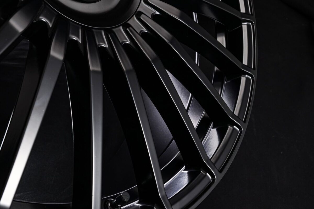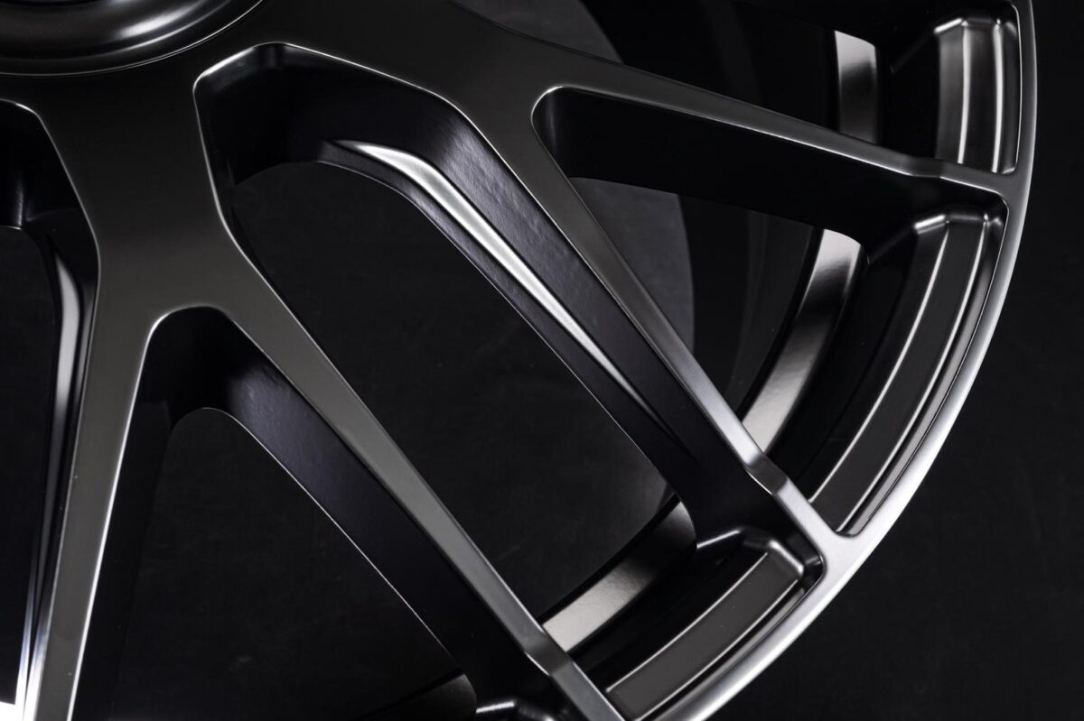 ホイールナットをカバーするセンターパッケージを装着することで、足元はよりクリーンな印象に仕上がる。センターキャップ周辺を滑らかに落とし込み、その外周からフィンスポークへと自然につなげることで、スポークの足長感を一層強調しているのが分かる。