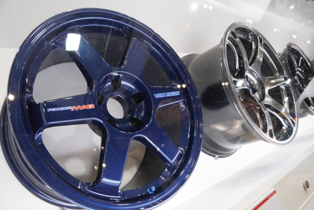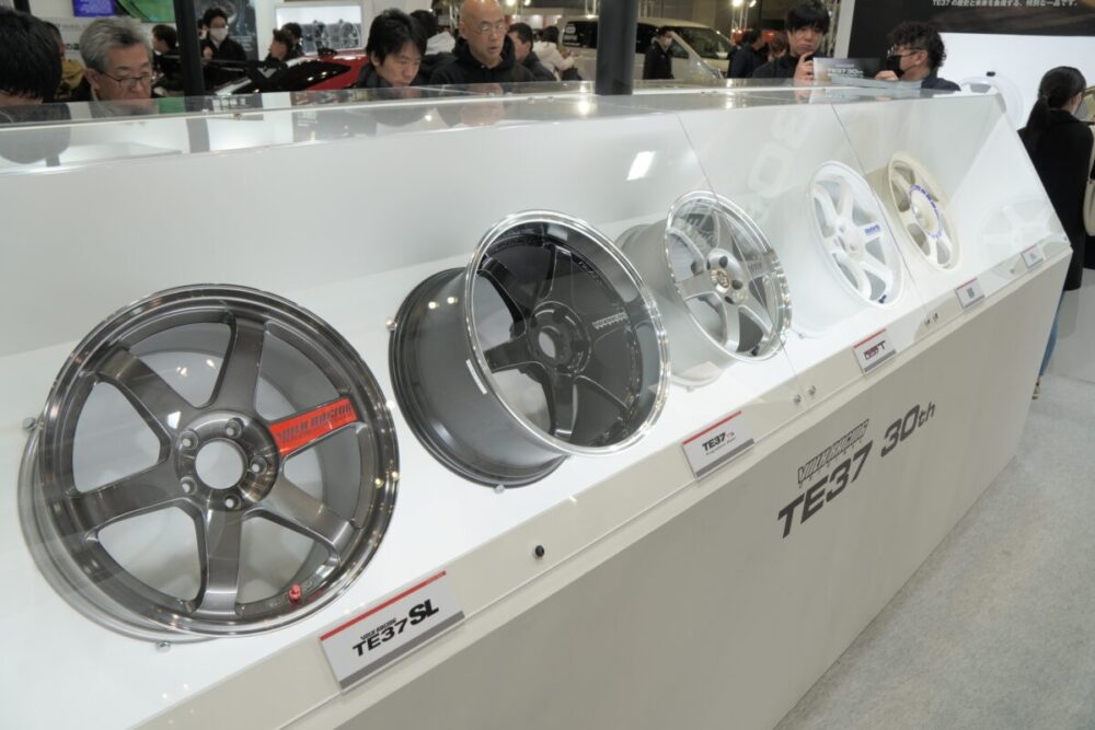 そして、ブースはまさに“ホイール博物館”。30年分のTE37と派生モデルがショーケースに並び、原型になった「ツーリング・エボリューション」まで展示される濃さで、ファンはもちろん初心者でも「歴史が積み重なるブランドの凄み」を感じ取れた。