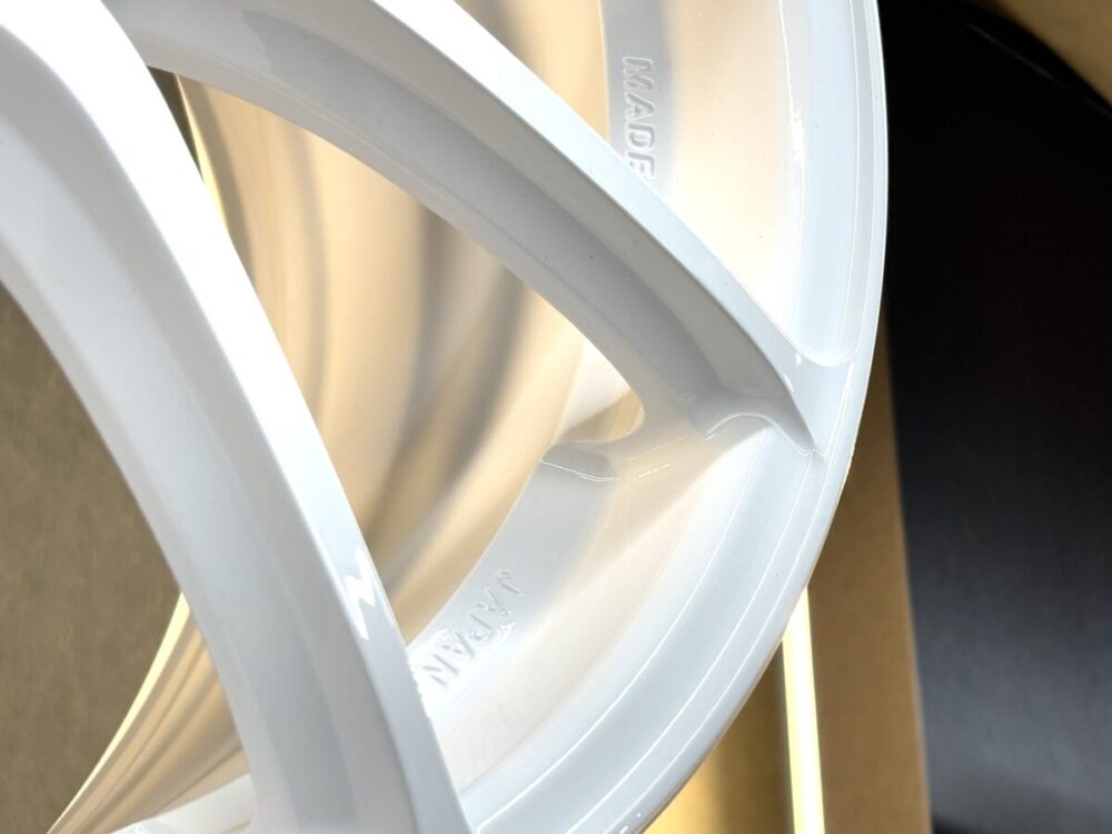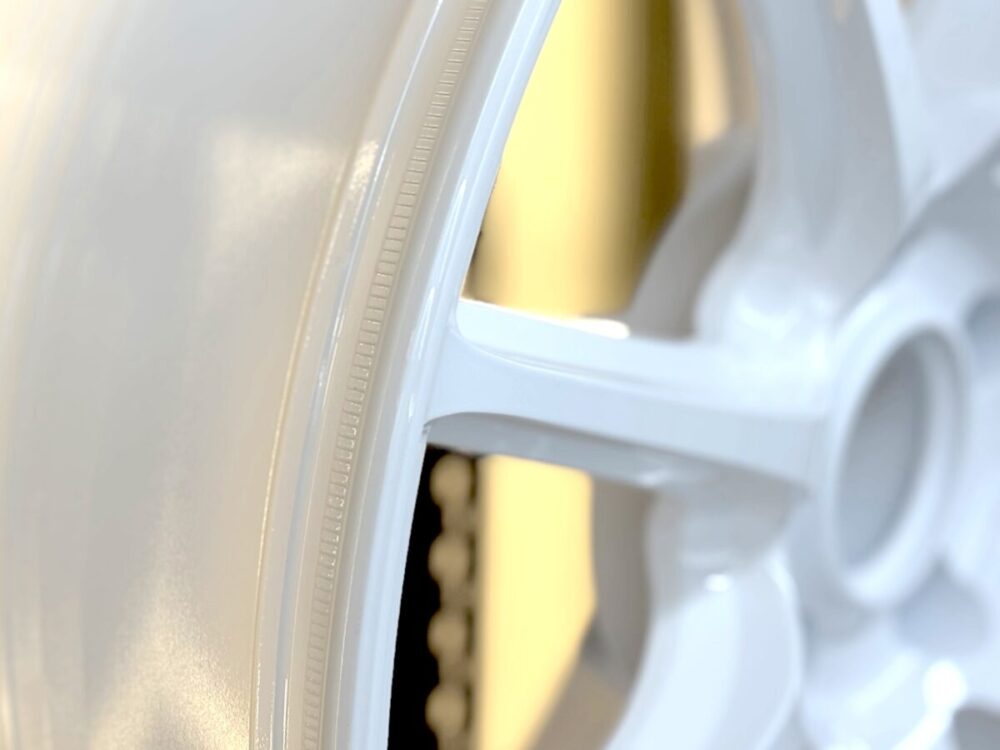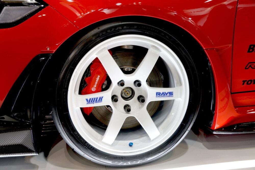 そして“らしさ”が最も分かりやすいのがリムフランジの仕立て。RAYS特許のA.M.T.で「VOLK RACING」ロゴに加え「RAYS ENG.」「MADE IN JAPAN」まで刻む演出は、性能への自信そのものだ。