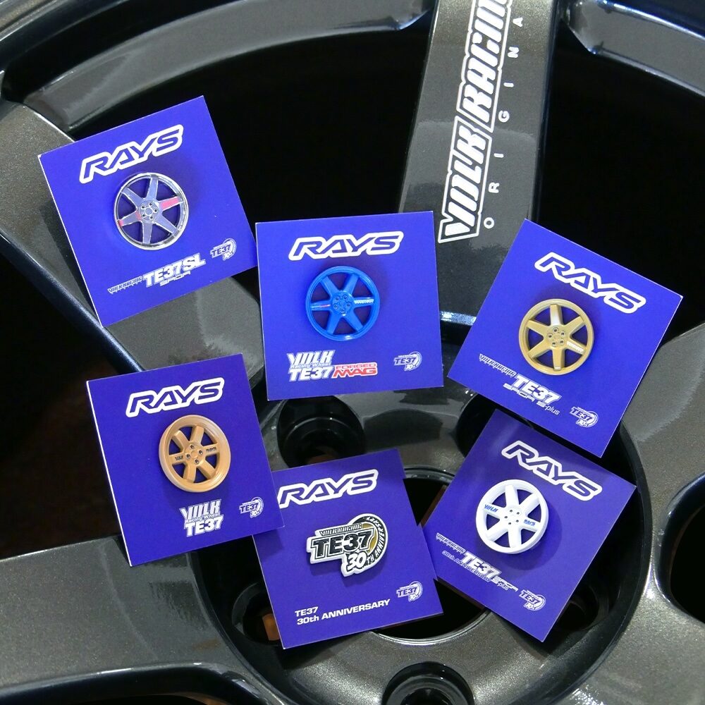 その中でもとくに注目を集めたのがTE37のホイールを模したピンバッジと30周年を記念したRAYS FAN CLUB会員様限定商品のピンバッジだ。RAYSファンならホイールのピンバッジと30周年記念ピンバッジを2個着けしたいところ。