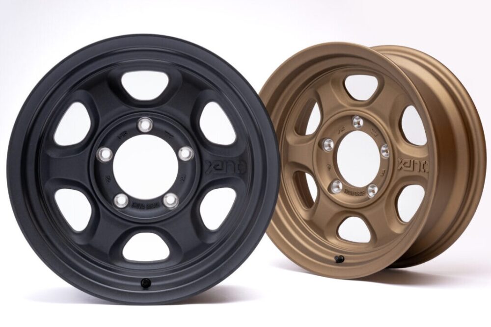 オフロードを意識した6本スポークのデザインを採用。どことなく懐かしさを感じさせるデザインは、往年のJA11ジムニーを意識したスタイルを持つ現行ジムニーとの相性もバツグンだ。