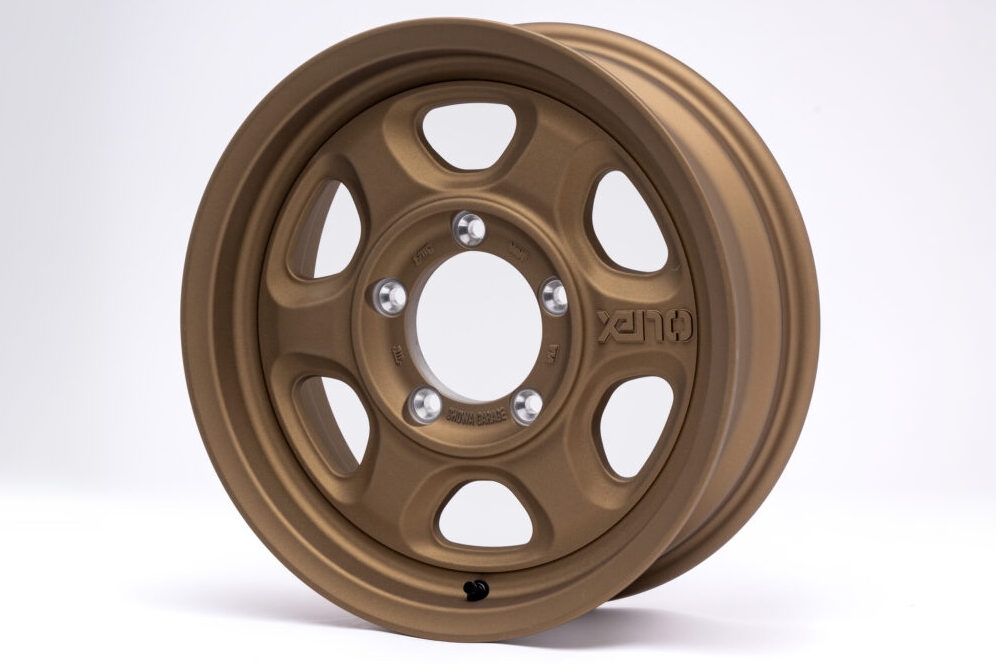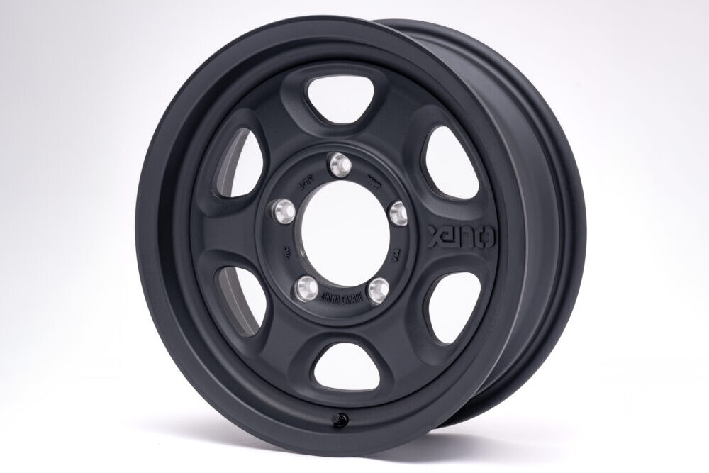 オフロードを意識した6本スポークのデザインを採用。どことなく懐かしさを感じさせるデザインは、往年のJA11ジムニーを意識したスタイルを持つ現行ジムニーとの相性もバツグンだ。