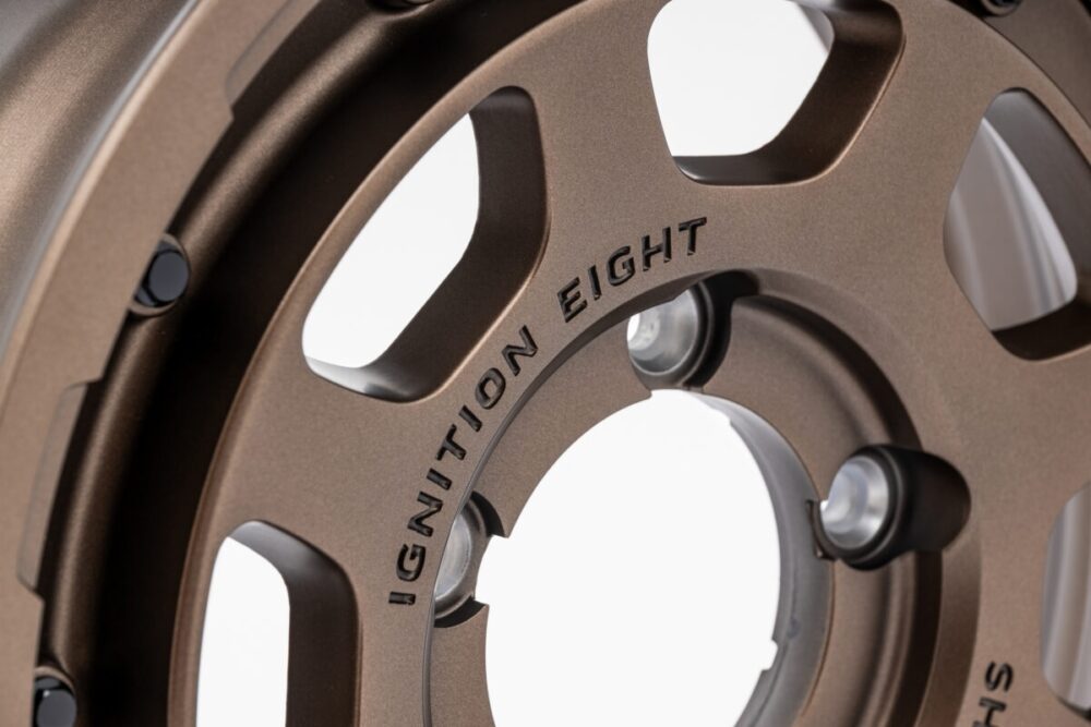 8本のスポークで構成されるディッシュタイプホイール。ホイールのリム部を、タイヤのビードを固定するビードロックを模したデザインとすることで、オフロード感をより際立たせ、無骨で力強いイメージをかもし出す。