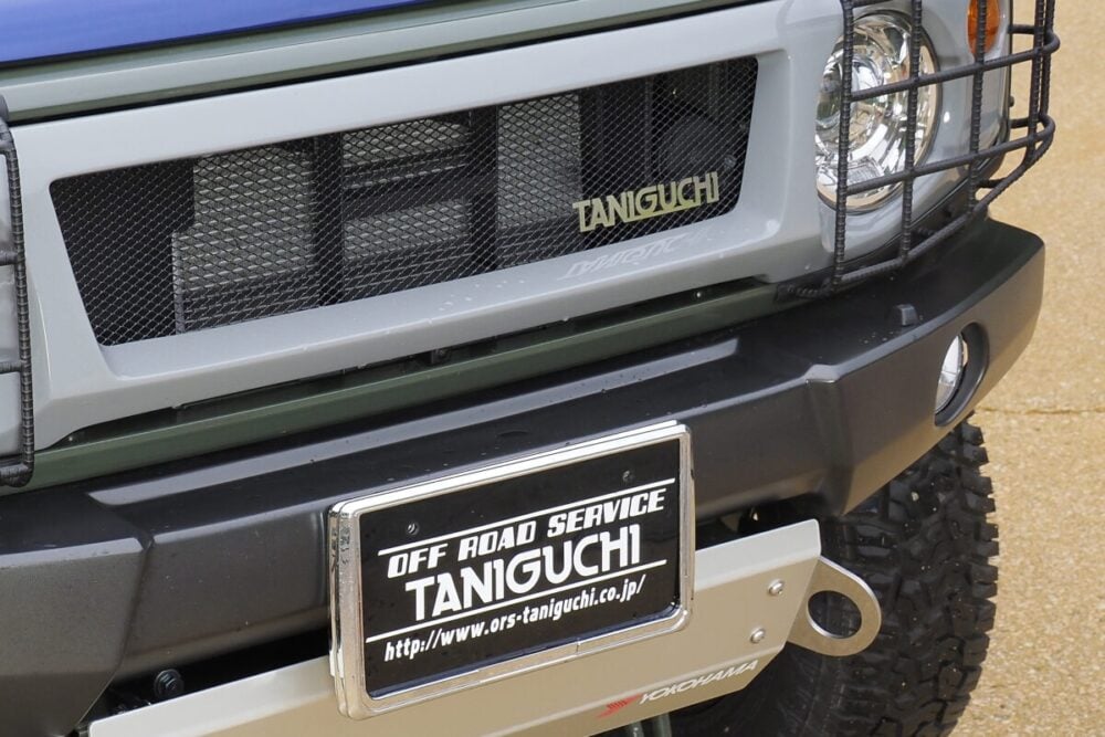 タニグチのダブルフロント/ダブルリアバンパー、そして新製品のウォッシャー穴付きFRPグリルは、その“無骨さ”を強調するための王道メニューである。