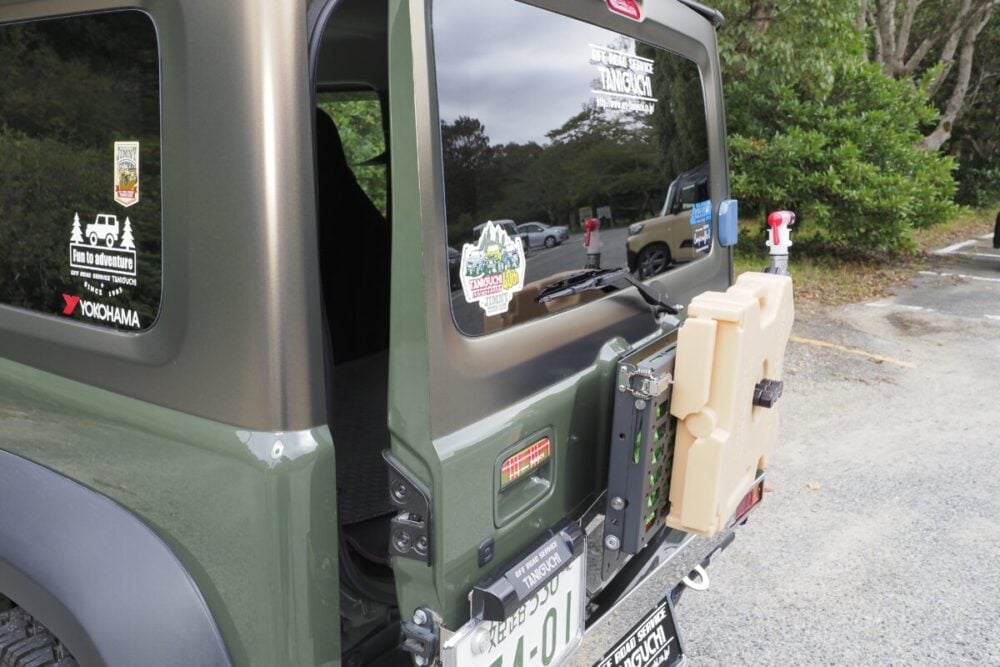 現行ジムニーのJB64、JB74オーナーならご存じのことだろうが、リアゲートの開口角度が意外と少ないのだ。ほぼ70度未満といった開き具合で、大きな荷物や、長い荷物を積もうとした際に、ゲートが邪魔になる。これがしっかり開いてくれればなぁという意見は結構聞いていた。