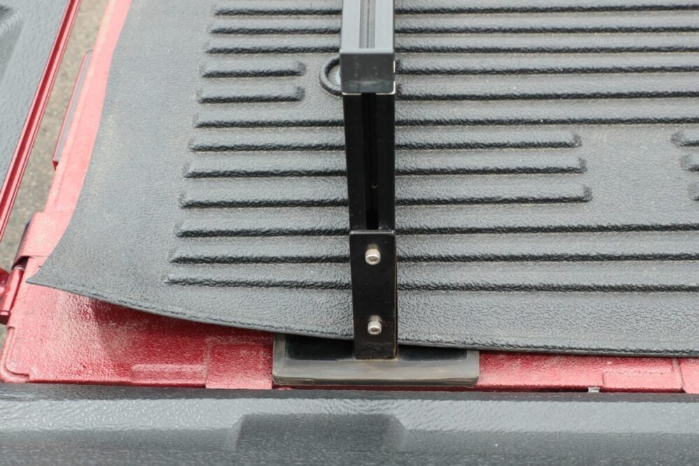 場荷台セパレーターの土台プレートを荷台の両端の平らな場所に置く。