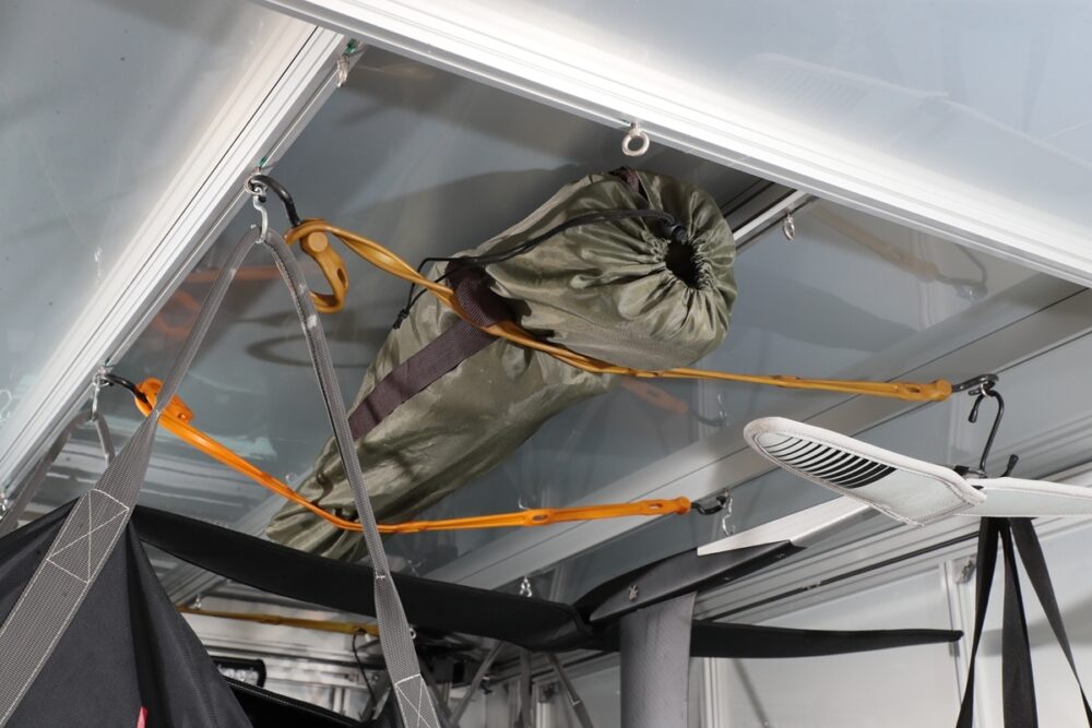 例えば、マリンスポーツのウイングフォイルの道具を載せるケース。ボードから長く伸びるフィンを運ぶには、毎回のように分解と組み立てをしないといけなかったが、高さを抑えたトラレールを2つ取り付けることで、ボードを逆さまにして伸びるフィンを上に向けて配置できる。
