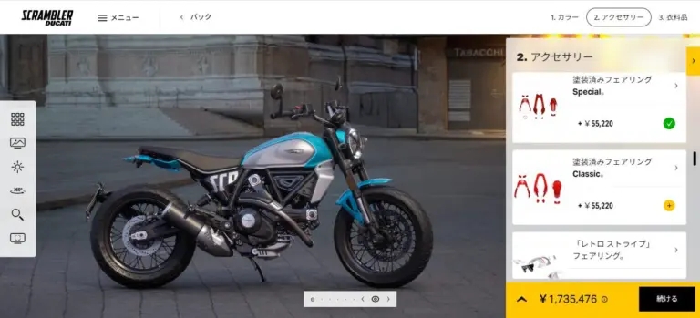 また公式サイトには「ドゥカティ・コンフィギュレーター」という400超の純正アクセサリーと高精細3D体験で理想の1台を自在に創れるページも特設されている。