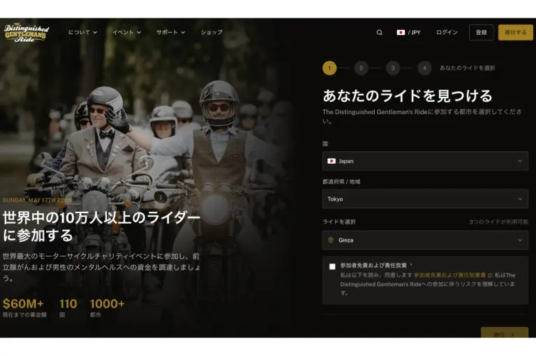 DGRの公式HPから「登録」を選び、国や地域を選んだら参加したい「ライド」を選択する。ここで「Ginza」を選び登録を完了すれば、「銀座ライド」に加われる。