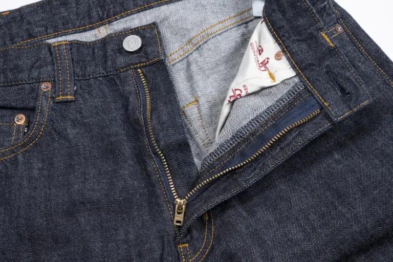 ジッパーユニットには老舗のUNIVERSAL社製をチョイス。ポケットの内袋「スレーキ」はもちろん児島ジーンズのオリジナル仕様です。