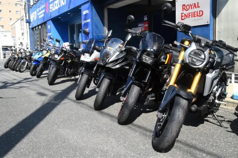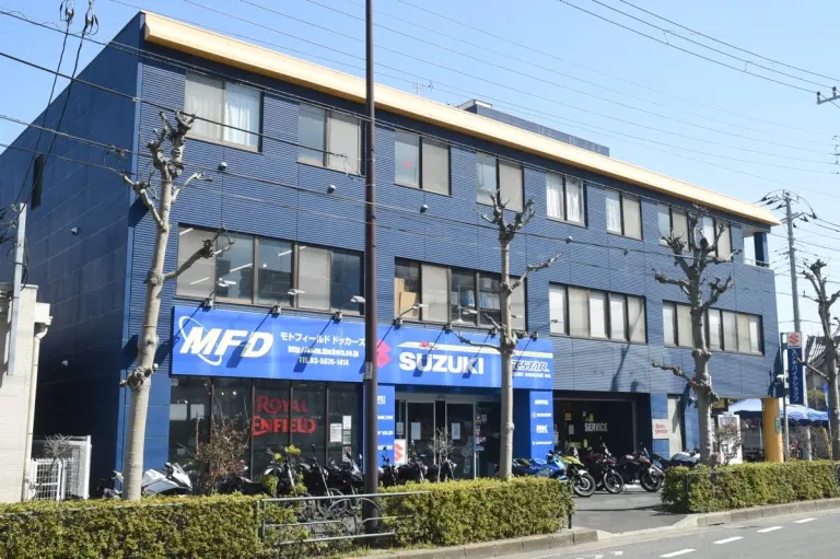 国内外の新車を取り扱い、SUZUKI中古車を多数展示販売するMFD。同グループは総数12拠点(モトフィールドドッカーズ8店舗、KTM専門4店舗)で関東から沖縄まで広く店舗展開している。
