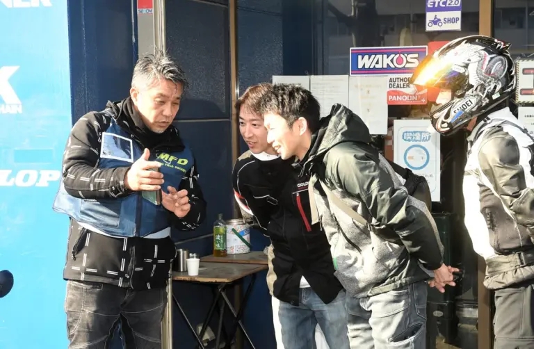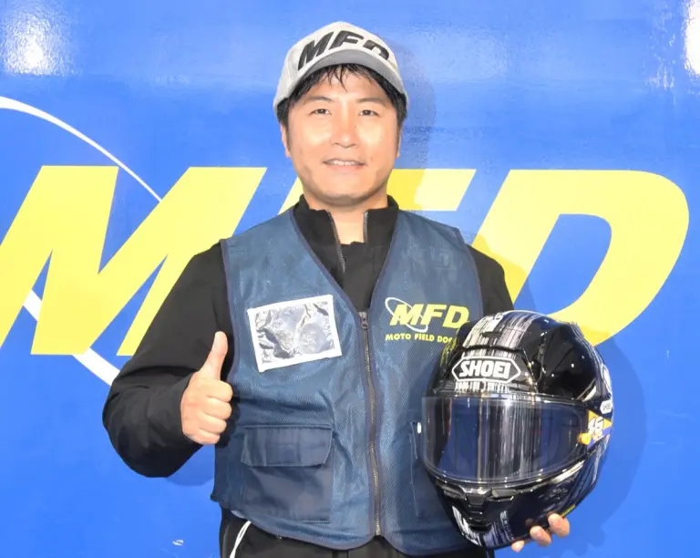 1993年より全日本ロードレース選手権GP250クラスに参戦を開始し、スーパーバイク世界選手権やスパースポーツ世界選手権、鈴鹿8時間耐久ロードレースなどで活躍した・藤原克昭氏も試乗会の先導役として参加する機会がある。2014年限りでレース活動は引退したが、現在はMFDグループの社員となり、走行会では先導インストラクターを務めることも多い。当日は気軽にライディングテクニックのアドバイスをしたり、休憩時間には参加者にレースの裏話を披露するなど、試乗会の雰囲気を盛り上げてくれる。