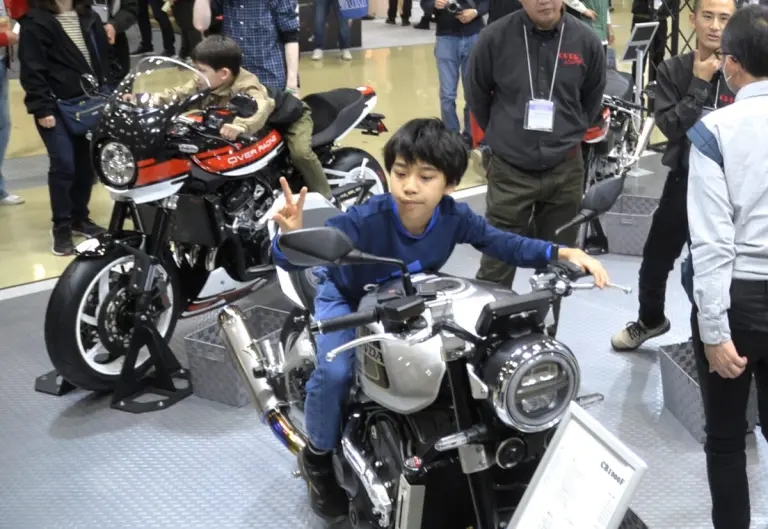 オーヴァーレーシングプロジェクツは、今年の東京モーターサイクルショーで、同社のパーツ開発技術力とチャレンジ精神を現したブース展開を行い、レーシングマシンとともに、電動の月面探索バイクも展示。また「楽しく、カッコよく、そして安全に」のポリシーをアピールするため、初めて同社のカスタムバイクに触れて乗車できるように設置。CB1000F、Z900RS、XSR900 GP、Monkey125の4台が展示された。ブース内では熱心なファンから家族連れまで来場者の笑顔が絶えなかった。