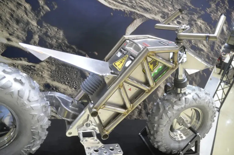 「今年は各イベント出展を控え、東京モーターサイクルショーに注力しました。前年度からスペースを2倍にしてスタッフも大幅に増員しています。これまでは開発中の参考出品が多く、観てもらうことが主流でしたが、今回は車両に触ってまたがって楽しんでもらえるような展示を行いました。レース車両や月面探査車は触れられないのですが、車両は触ってまたがり、パーツも手にとってみられるような展示を行っています。