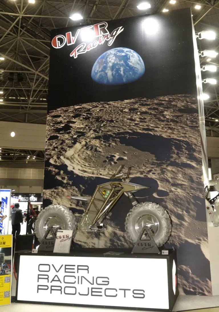 今年のオーヴァーレーシングプロジェクツのブースは、昨年からさらにアップデートし、気軽に楽しんで同社製品に触れて乗ってもらうコーナーをメインに、背面にレーシングマシンと月面探索電動バイクを展示。スポーツ派ライダーだけでなく、家族連れでブースを楽しむ姿も多く、例年以上に盛り上がった。