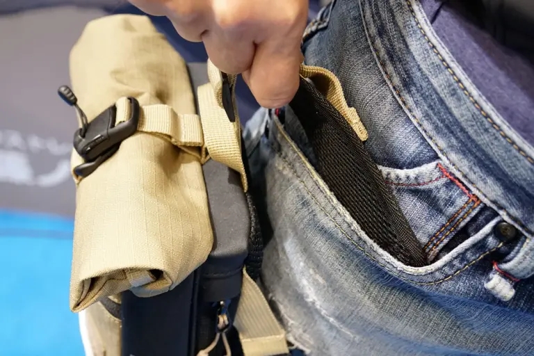 みっつめは、盗難防止に役立つ「バッグ用ワイヤーロック」を取り付け&収納可能なロックポケットの採用。