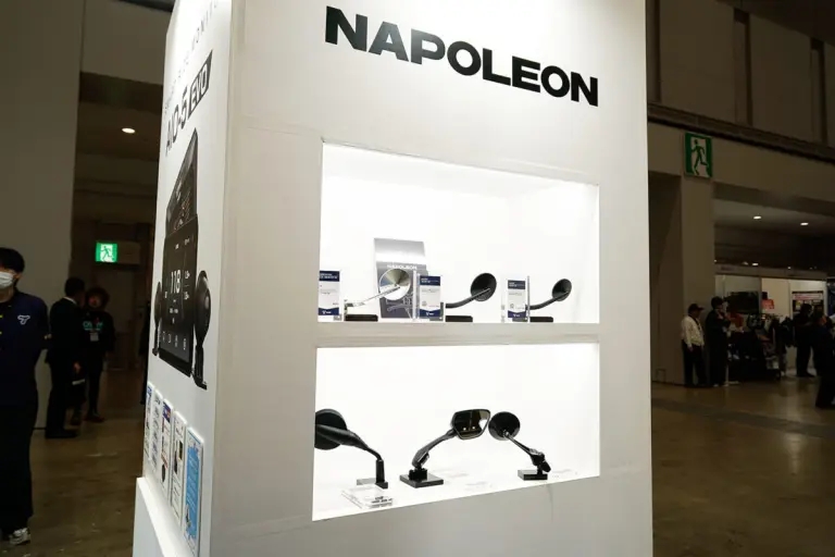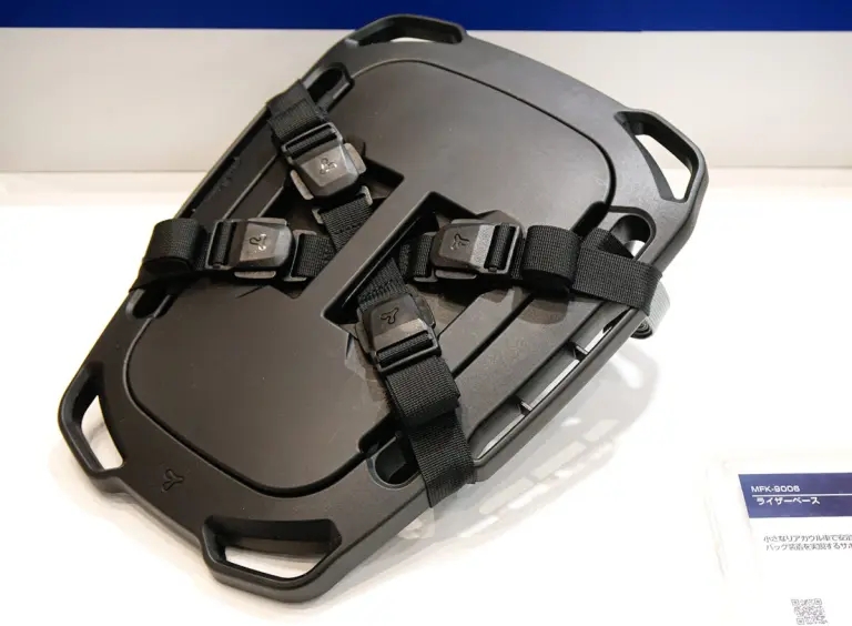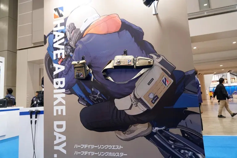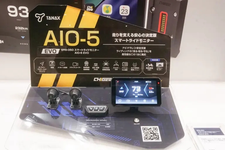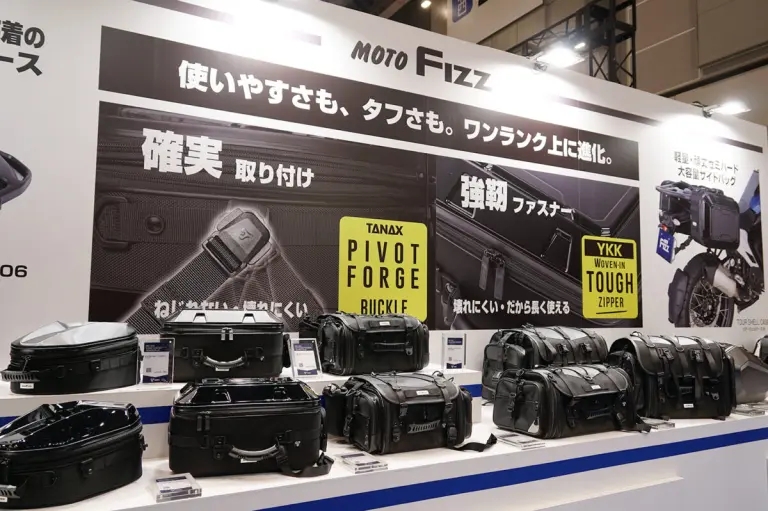 2026年東京モーターサイクルショーのタナックスブースでは、さらにタフ&使いやすさが向上した新作バッグ群に加え、小型シートの車両でも安定したバッグの取付が可能なライザーベースやバッグの盗難防止に効果的なバッグ用ワイヤーロック、高性能スマートライドモニターや小型・軽量なポータブルドライブレコーダー、洗練されたデザインと機能性を両立するナポレオンミラーの展示など、バイクライフを今まで以上に便利で豊かにしてくれる製品たちが来場客を楽しませていた。
