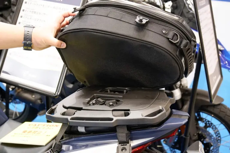 尖ったリヤカウルや小型シートのSS車などにシートバッグを強固に安定固定でき、積載の悩みを解消してくれる「ライザーベース」。