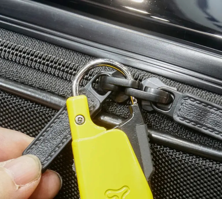 モトフィズのワイヤーロックはバッグのYKK製タフジッパーのファスナーのロック穴に対応しており、休憩時などバッグ装着状態のままでバイクから離れる場合でもバッグの中身をしっかりと守ってくれる。また、グラブバーやフレームにワイヤーを通すことで、バッグごと盗まれる心配も軽減する。