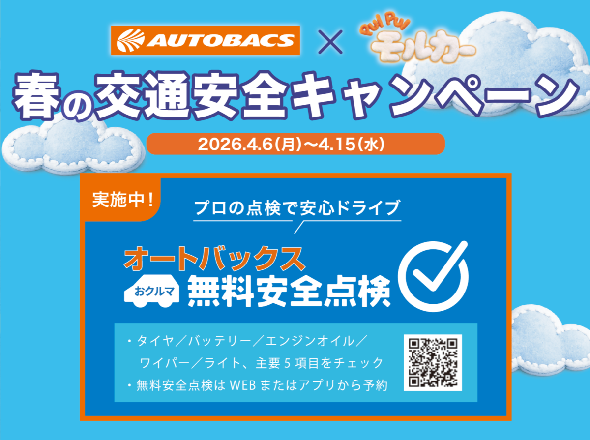 株式会社オートバックスセブンは、「春の交通安全キャンペーン」を2026年4月6日から4月15日まで全国のオートバックスグループ店舗で実施すると発表した。