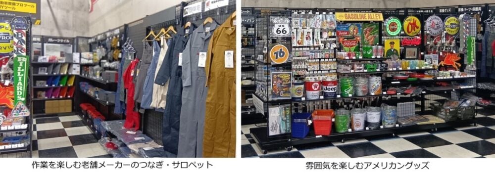 同店舗は、社内公募による新規事業開発プロジェクトから誕生したもので、自動車整備士向けの高品質工具やカスタム部材、アメリカン雑貨などを展開する。DIY愛好家が「次は何しよう?」と発想を広げられる売場構成が特徴である。興味のある方は実際に立ち寄ってみてはいかがだろうか。