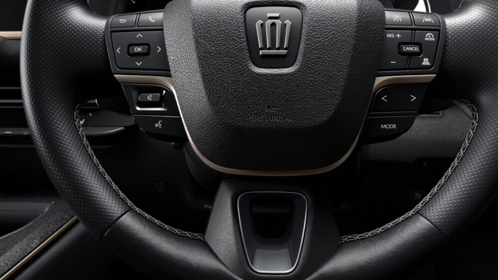 - ディンプル加工を施した本革巻き3本スポークステアリングホイール*