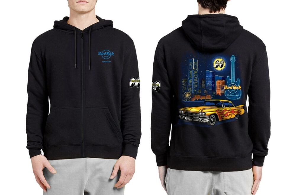 様々な音楽を聴きながら料理が楽しめるアメリカンレストラン「ハードロックカフェ」の横浜店では、ホットロッドやアメリカンカスタムバイクシーンにおけるカルチャーアイコンとして知られる「MOONEYES®」との第2弾となるコラボレーションを実施、レストランに併設するオリジナルグッズを扱うロックショップにおいて、12月5日(金)よりコラボグッズ3種(Tシャツ、フーディ、ピンバッジ)を販売します。また、レストランでは、このコラボグッズ販売を記念したスペシャルバーガーとドリンク2種(アルコール/ノンアルコール)を12月5日(金)から19日(金)の期間、提供します。