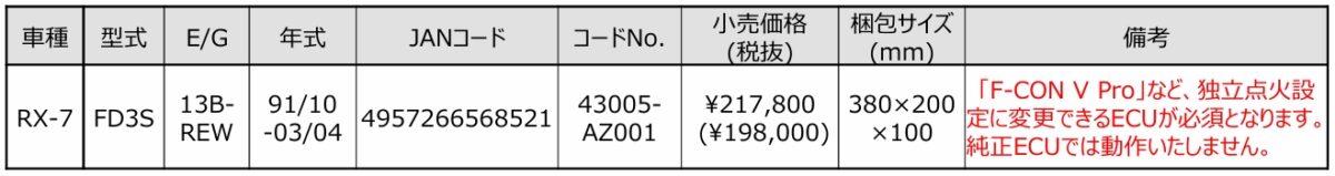 RX-7/FD3S用「スーパーファイヤーレーシングコイルプロ」発売