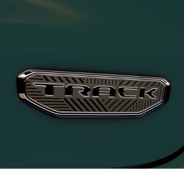 エクステリアには、ボディ同色のフロントフェイシアとホイールフレア、シルモールディングに加え、グレーのアクセントを施し、スタイリッシュな印象に仕上げました。さらに、ジープロゴバッジを従来のクロームからグロスブラックへ変更したうえで専用の“TRACK”バッジを装着することで、限定車ならではの存在感を際立たせています。