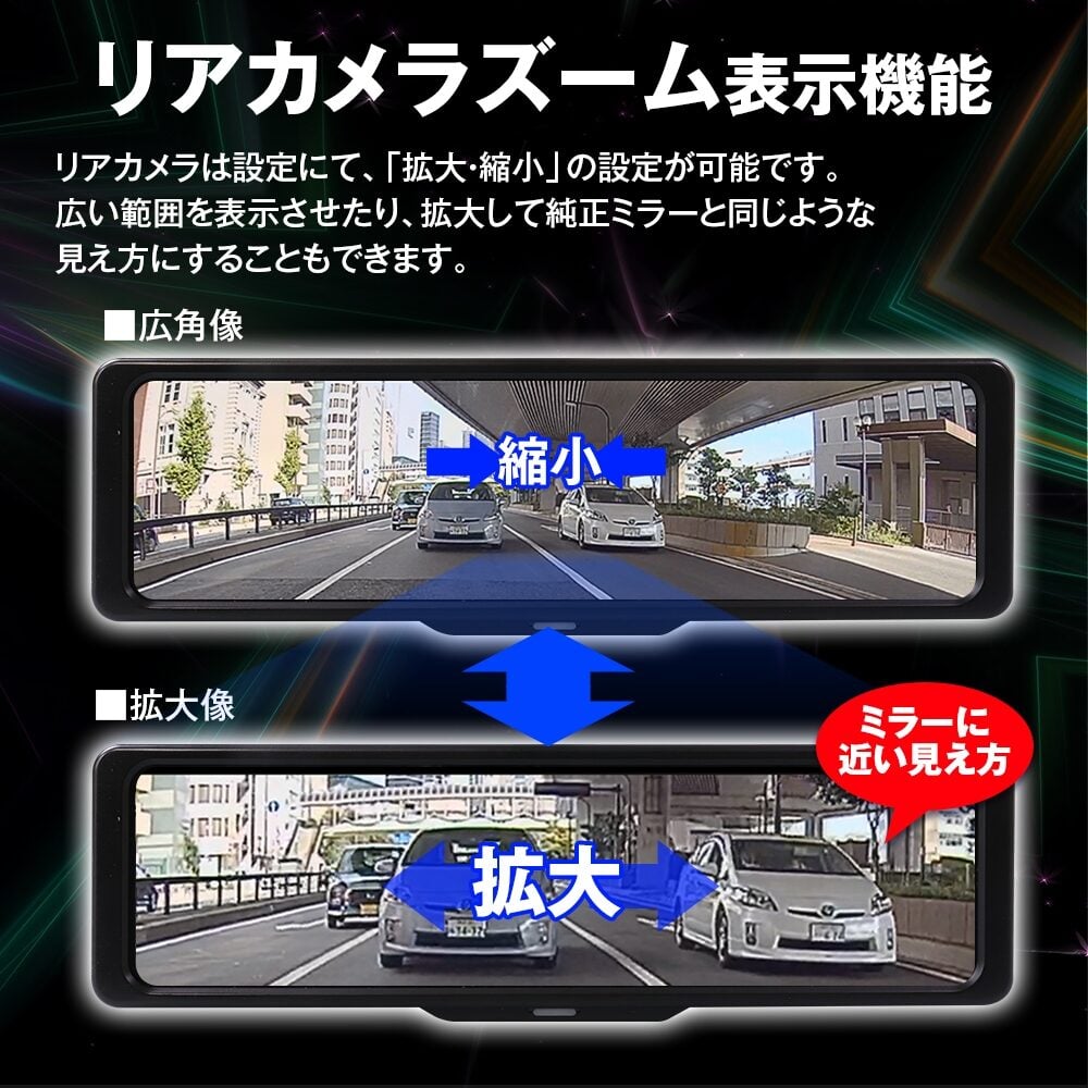・GPSも標準搭載しており速度や正確な日時表示可能。リア映像のズーム機能も搭載しているので初めてデジタルミラーを取り付ける方でも違和感なく後方確認ができます。