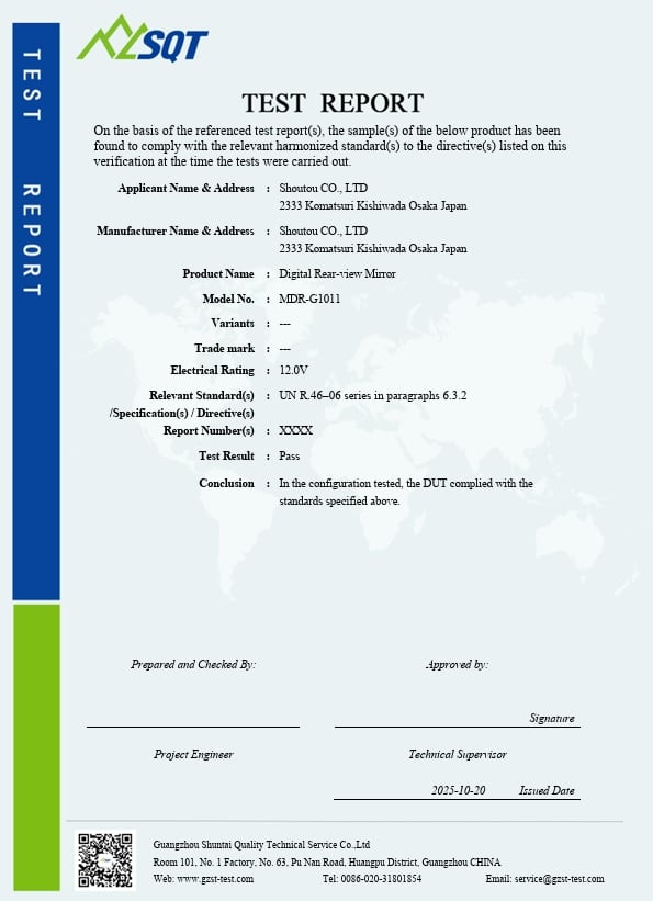 本製品は衝撃テストをクリアしており、点検や車検の際に必要な場合は技術基準適合確認書をMAXWINホームページからダウンロードすることができます。