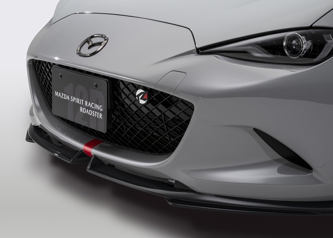 - メッシュタイプのデザインを採用し、「MAZDA SPIRIT RACING」のエンブレムを施したフロントグリル。