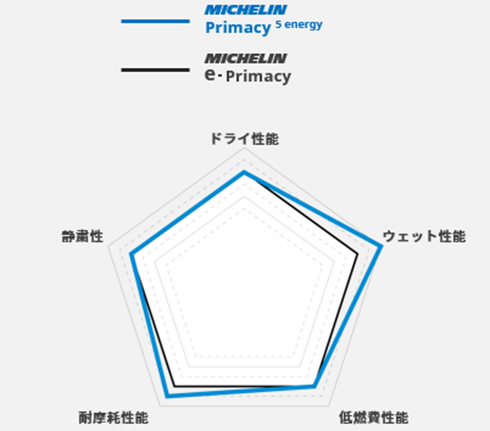 e-Primacyの後継である「MICHELIN Primacy 5 energy」は、優れた低燃費性能、耐摩耗性能とウェット性能を兼ね備えた環境に配慮したプレミアム・コンフォートタイヤで、低燃費性能においては最高グレードAAA(1)を獲得し、毎日のドライブで確かな違いを実感できます。