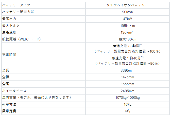 「日産サクラ」主要諸元表